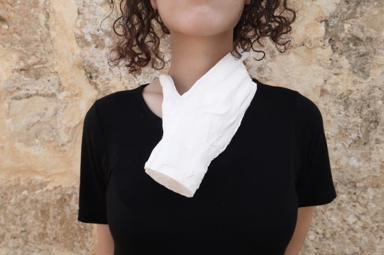 Text by Holly Knowles Valentine Hall, Hamrun, July 12th, 2017: A dark haired woman in a long white dress stands outside…