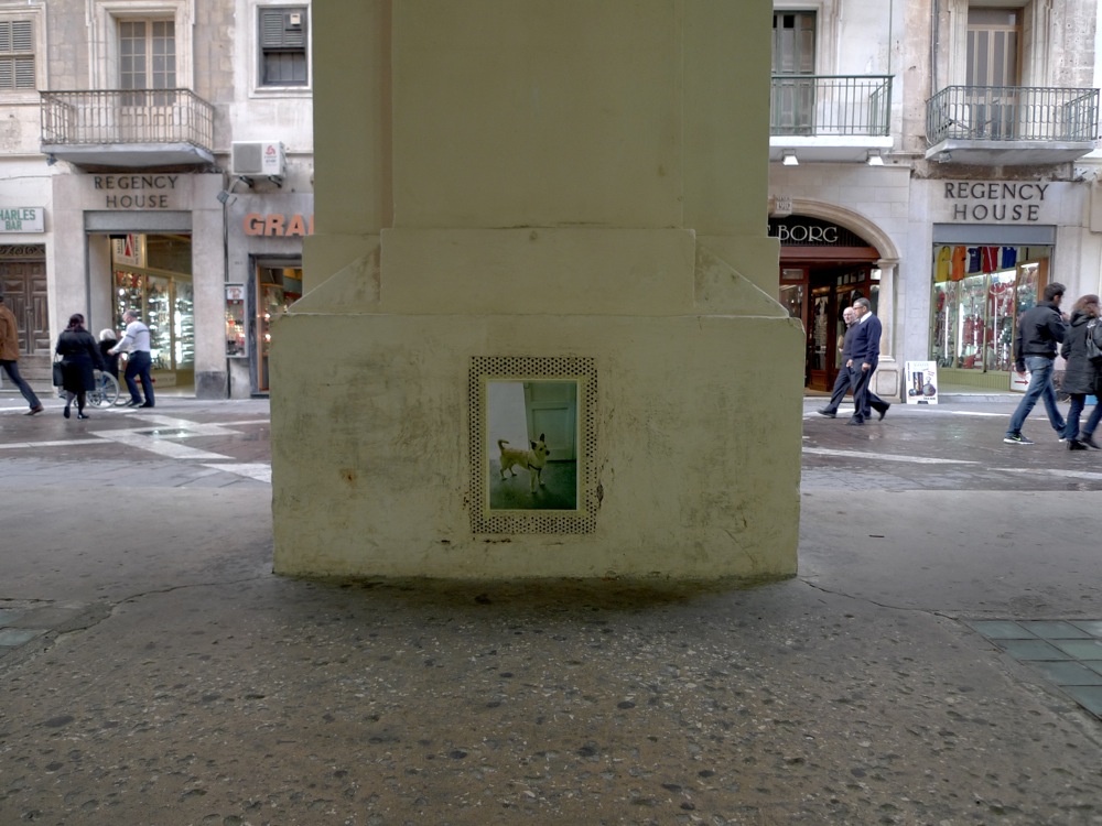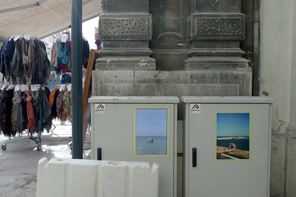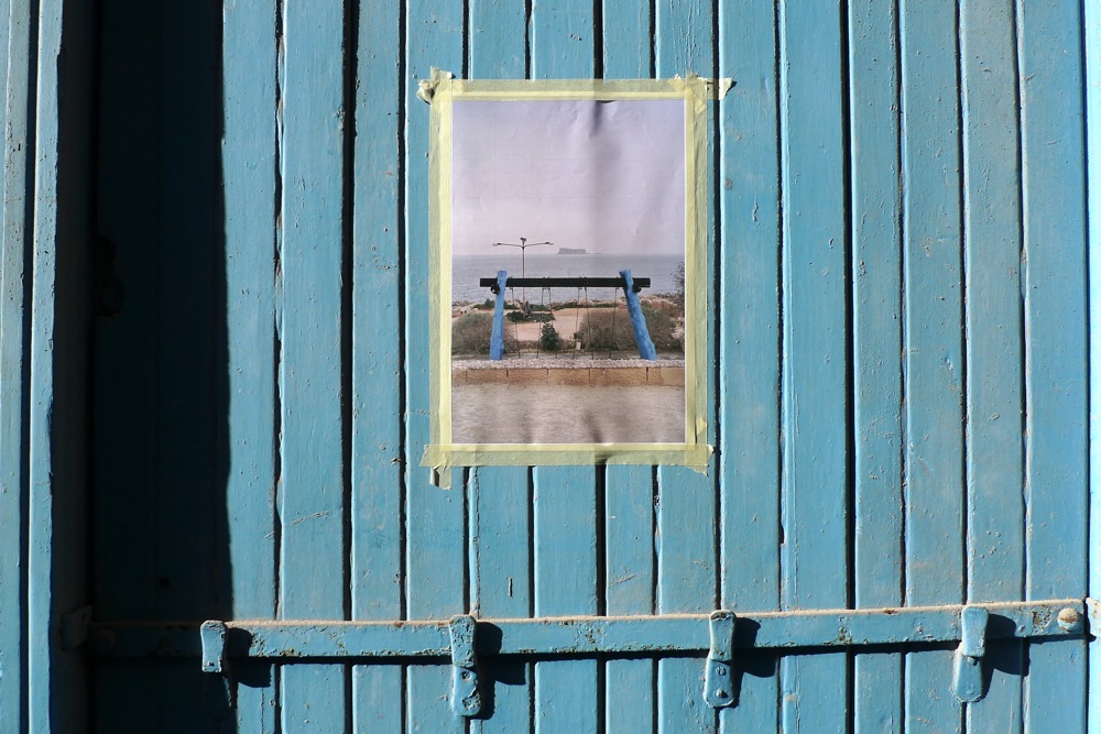 Most pictures were placed in relation to an aspect of the location (funny dog looking out of the Jewellery Shop; Blue Swing on top of the Blue Door; Kitchen Interior in front of a local Cafe; Festa Pictures at the location where Festas usually happen… ) but others were pure coincidences.