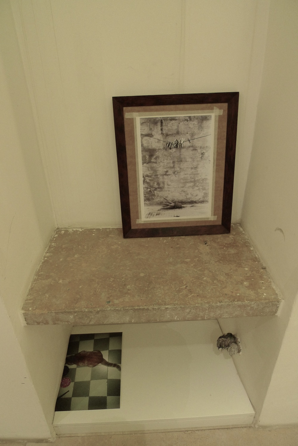 Our first Fragmenta Event was a great success – lots of people came, had a look, then took a map and went for the discovery trail of images which were placed around town. Many of them came back to chat. Some just remained in the room, looking at the mesmerizing images: there were dogs, sea views, boats, beer bottles, cats, horizon lines and various body parts of people – or as Jon would describe it: “you might look for a theme amongst these images – you will not be given one.”