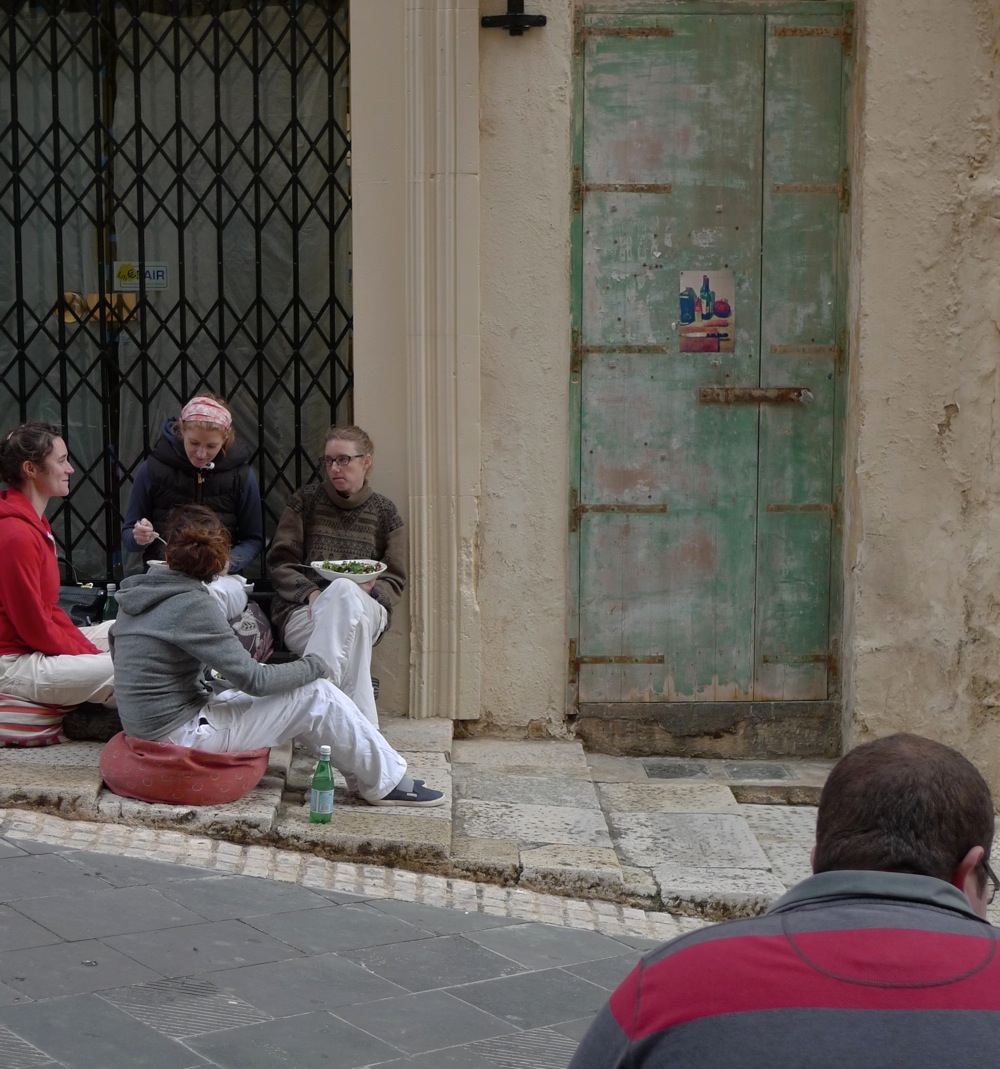 Again, no answers are provided, rather questions asked: Why do some pictures have such a melancholy feeling to them? Why do some of them look so old, yet so contemporary at the same time? Jon’s point of view seems to switch back and forth between extreme close-ups and the view of the overall pictures. There are the close-up details and there are wide angle images. The humans are found somewhere in between these two extremes, and maybe because they remain in this blurry in-between-world of non-said, the images contain also something magical. As if I was constantly trying to clean my glasses but the fog remains and after having looked and looked, I still do not understand what Jon really wants and more importantly: I still do not understand the images. Maybe that’s it: there is nothing to understand, nothing to prove. They simply show parts of a personal world, situated between the stones of Valletta, the Mediterranean Sea and the sky of Malta (Mlata). Jon is the observer from aside and from the back.