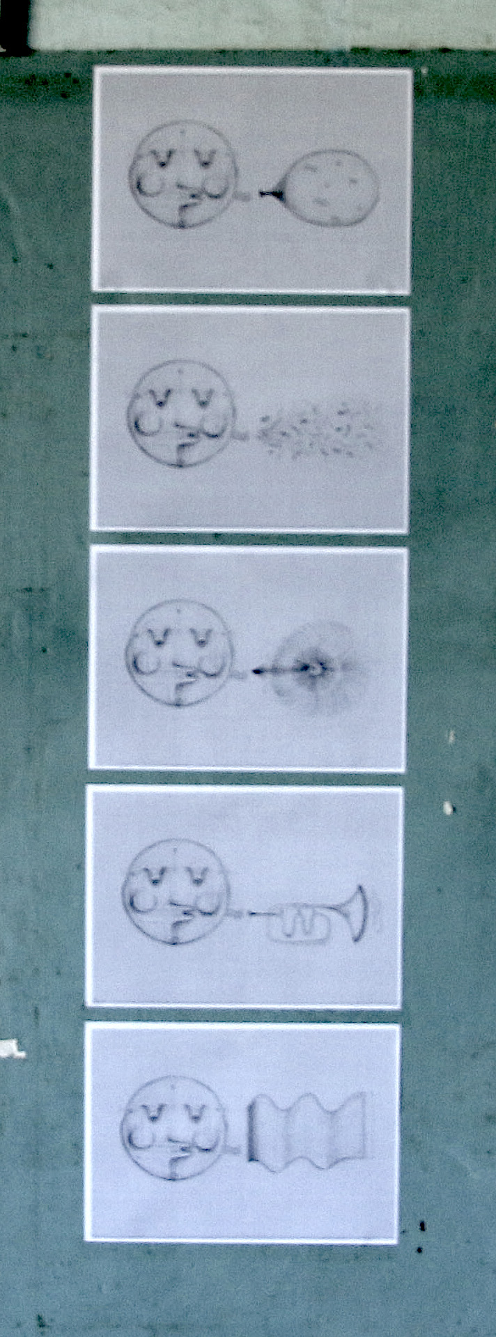 Five drawings representing the living soul of the feast celebrations were displayed. According to Adrian Abela, they illustrate a dissection of the actions that would be used in the mechanism of MACHINA, the paper memory machine.