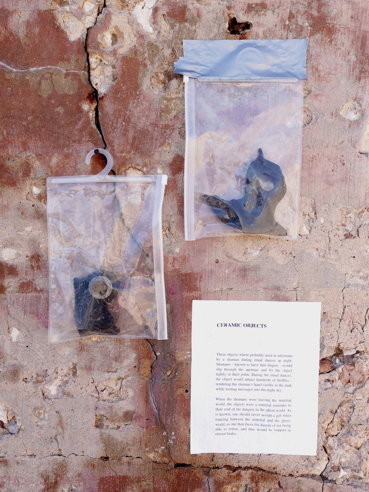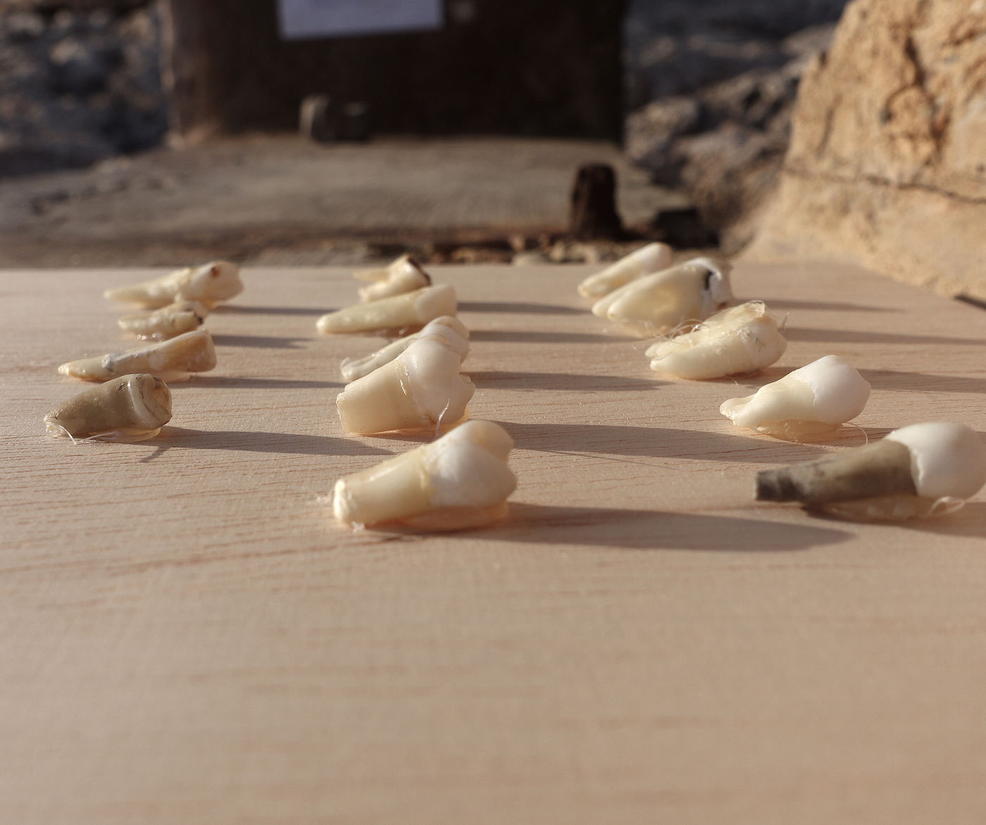 The collective exhibition featured works by the artists Ritty Tacsum, Aksel Høgenhaug and Bettina Hutschek. The collaborative work “Neil’s Tribe – Exceptional Finds on Filfla Demand Rewrite of History” by Aksel Hogenhaug and Bettina Hutschek presents the remnants of the ‘Tribe of the Owl Cult’, or the so-called ‘Neil’s Tribe’. This fictitious Tribe is created through pictures, archeological artifacts and descriptions. Prehistoric Teeth, petrified fingers, various artifacts and stones give an almost complete picture of a fascinating ancient tribe which “could” have been living here.